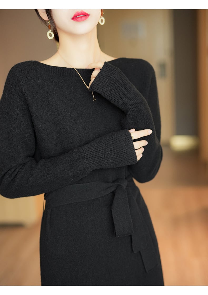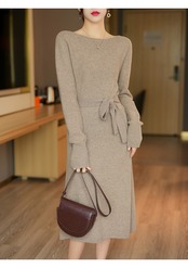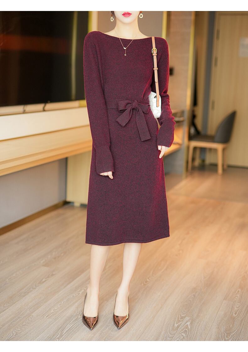 新作 レディース ニットワンピース ロング 長袖 きれいめ ベルト付き ミモレ丈【onepiece420】