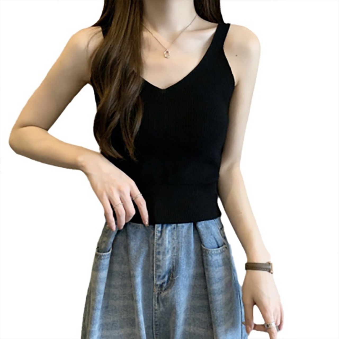 新作 レディース ノースリーブ キャミソール インナー 無地 リブ トップス 白 黒 伸縮 下着【shirt465】