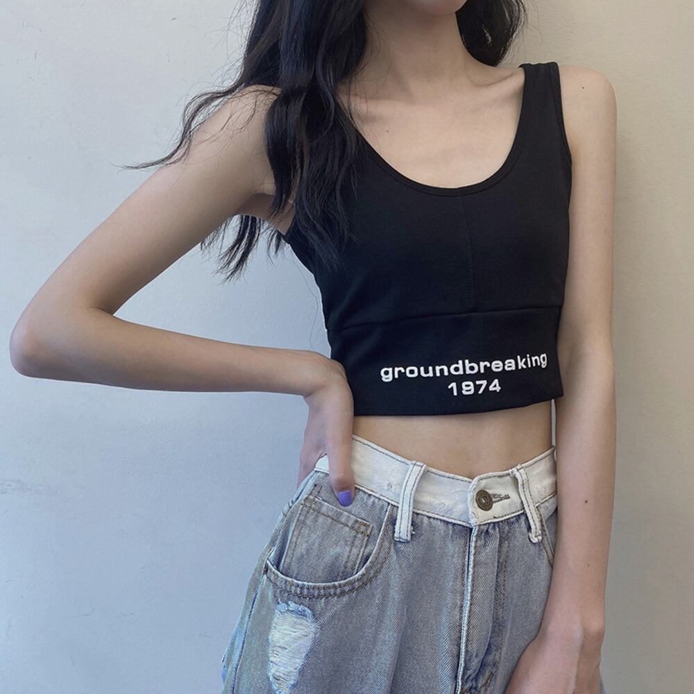 モノトーンなので露出度が高くてもヘルシーな肌見せになり、デニムパンツと合わせるだけでスタイリッシュなオルチャンカジュアルコーデが完成