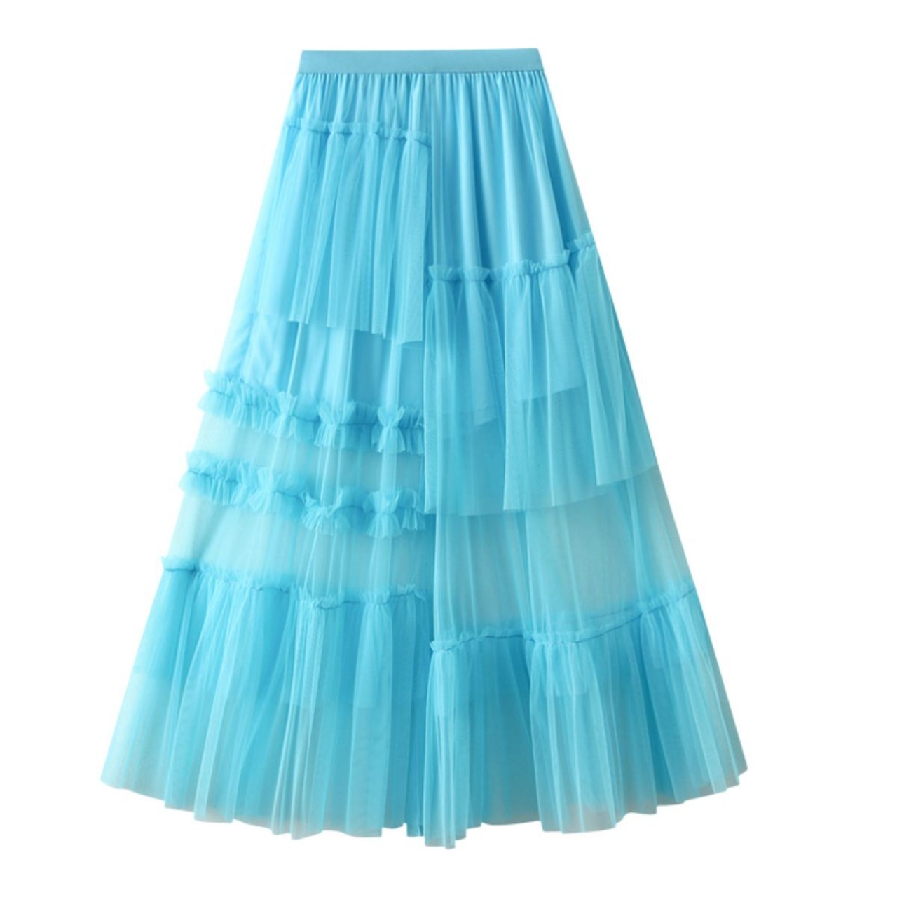 商品名 【即納】スカート ロング シアー フリル シースルー 透け感 チュール 夏 イベント【22148】