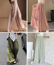 春夏に映える、なめらかな光沢感が魅力のシアーワイドパンツ。